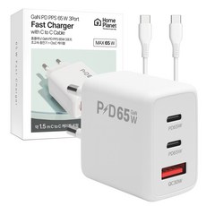 홈플래닛 GaN PD PPS 65W 3포트 초고속 멀티충전기 + C to C 케이블 세트, 화이트, 1세트
